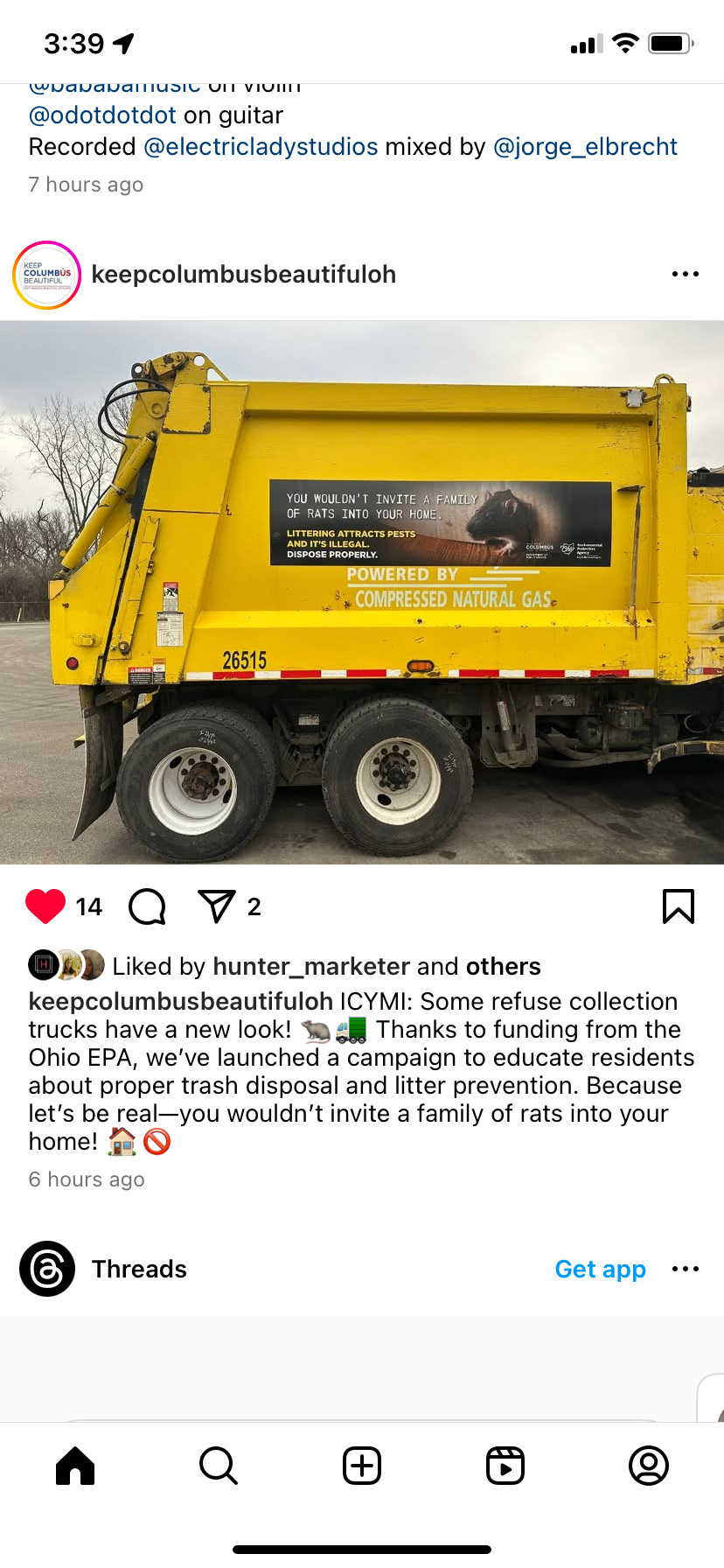 This campaign consisted of paid media on social as well as out of home digital boards in the Short North neighborhood and near The Ohio State University campus to target a younger audience, especially around the aptly described off campus housing's "move-out season." In addition, signage was created and installed on trashcans along Parsons Ave. for additional reach and stickers were applied to the garbage trucks to create a multi-pronged approach.